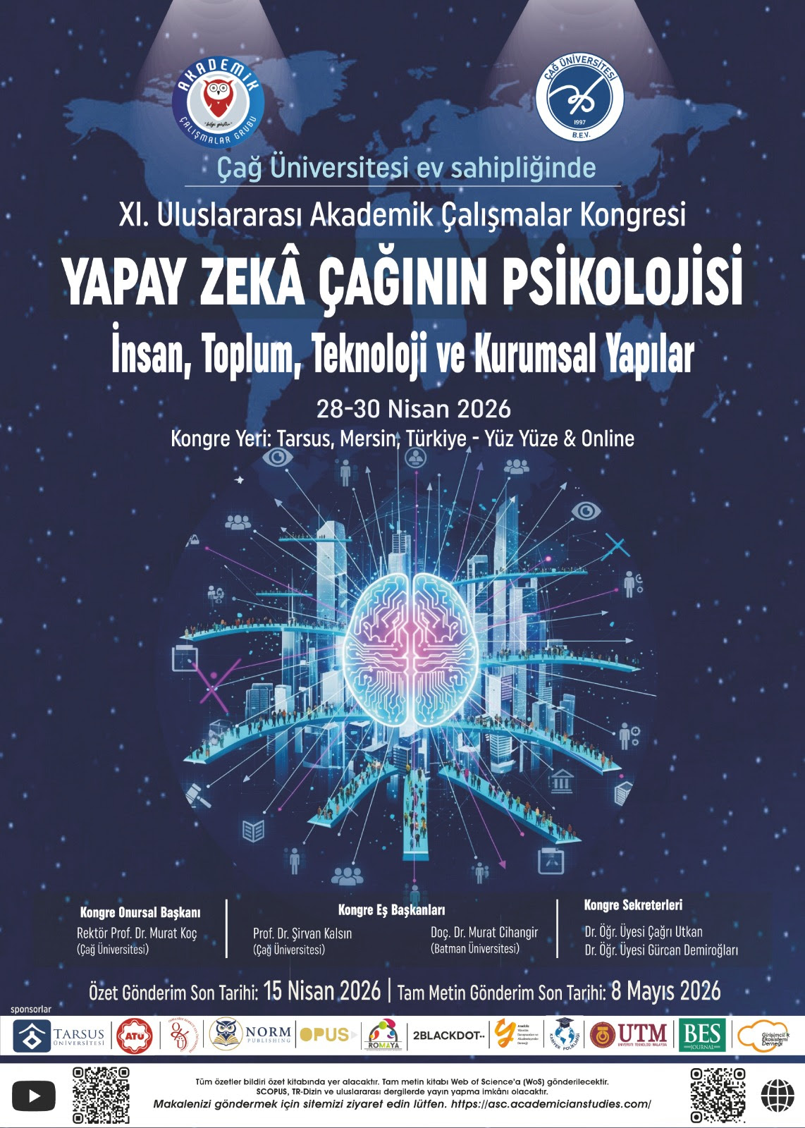 XI. Akademik Çalışmalar Kongresi (ASC 2026 / Bahar), 28–30 Nisan 2026 tarihleri arasında Çağ Üniversitesi ev sahipliğinde, Mersin / Türkiye’de gerçekleştirilecektir.