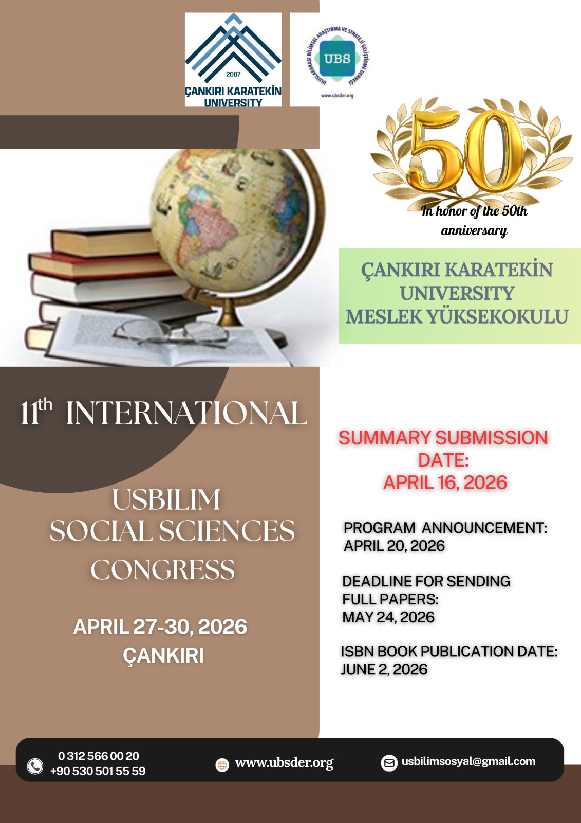 Çankırı Karatekin Üniversitesi Ev Sahipliğinde – USBİLİM Kongreleri11. Uluslararası USBİLİM Sosyal Bilimler Kongresi